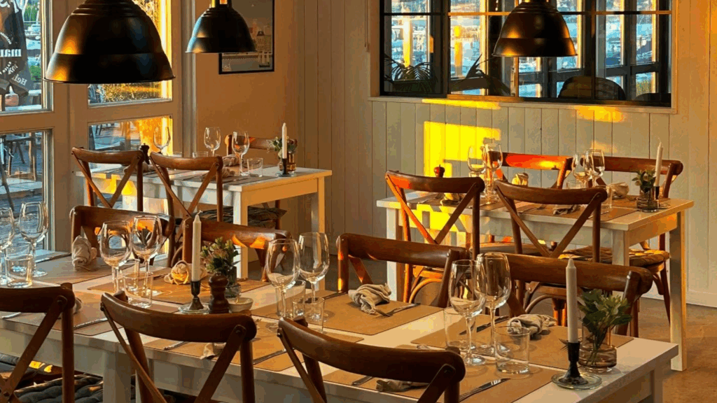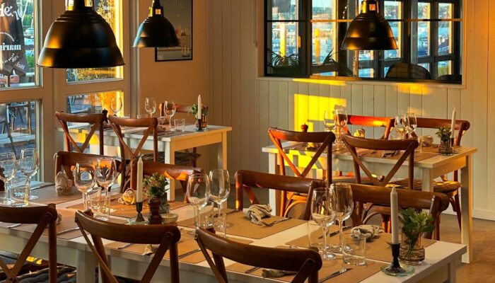 Restaurant Marinaen ligger direkte ud til Kolding lystbådehavn og Kolding Fjord – en maritim og panoramisk beliggenhed med smuk udsigt til vandet og lystbådehavnen.