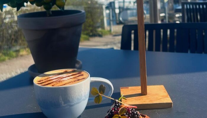 Indretningen fremstår moderne og hyggelig med lyst træ og store vinduer, der skaber et lyst og indbydende miljø – også kaldet “in a panoramic gateway into the maritime soul of Kolding”