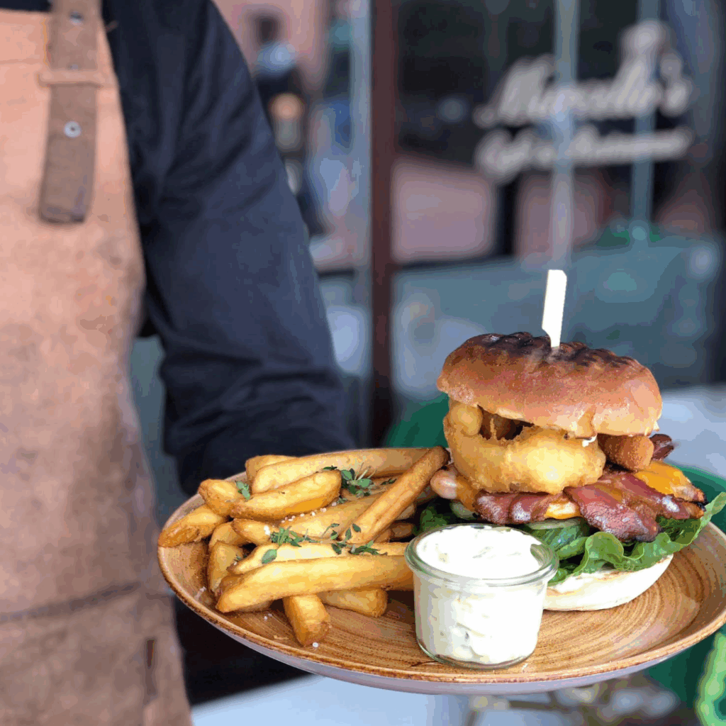 Cafe Marcello´s Café Marcello’s har noget til enhver smag, pastaretter, salater, nachos, steaks og byens populære burgere. Bestil din mad på hjemmesiden. Restaurant Over Aaen Syd Grillen